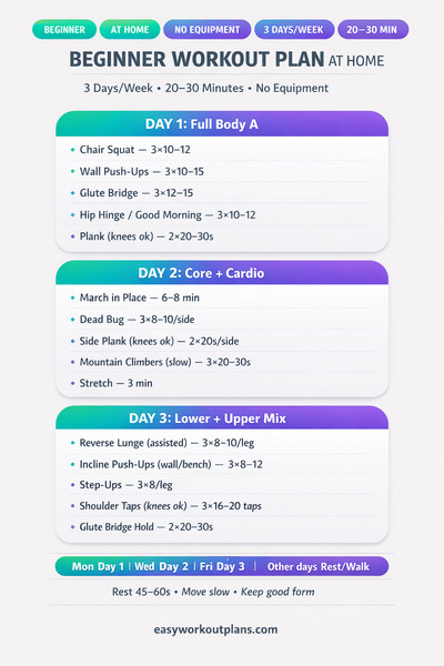 Beginner 3-Day At-Home Total Body Workout Plan