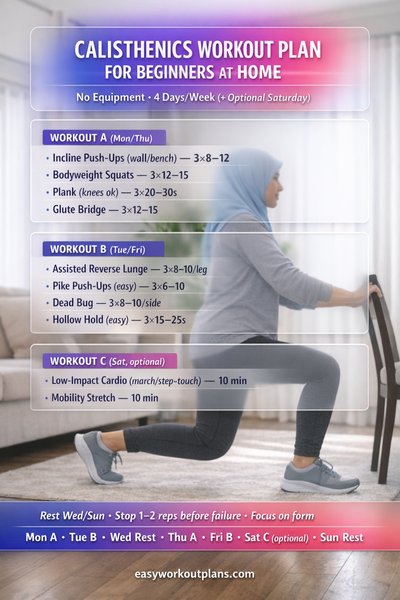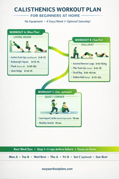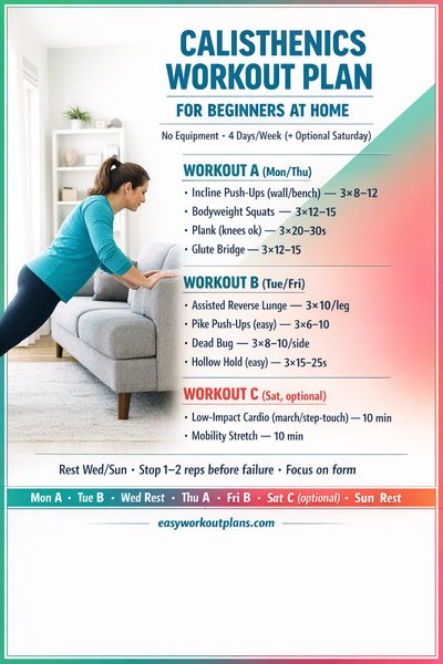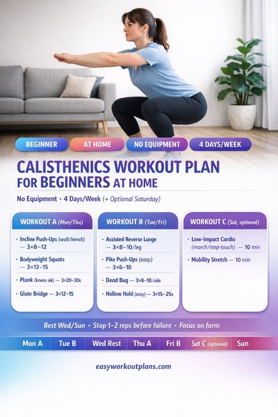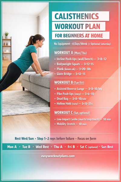 Calisthenics Workout Plan for Beginners at Home (4 Days, No Equipment)