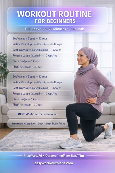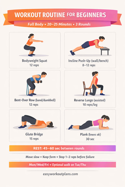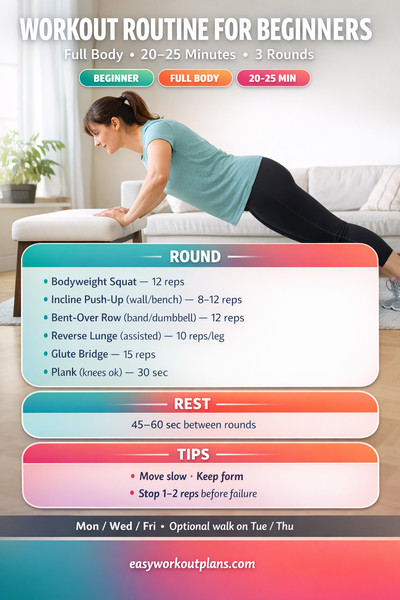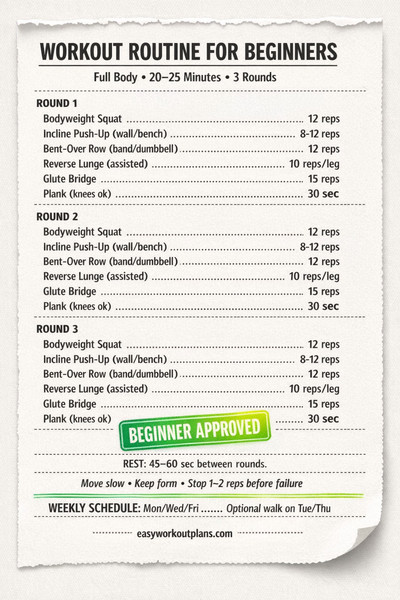Beginner Full-Body Workout Routine: 20–25 Minutes, 3 Rounds